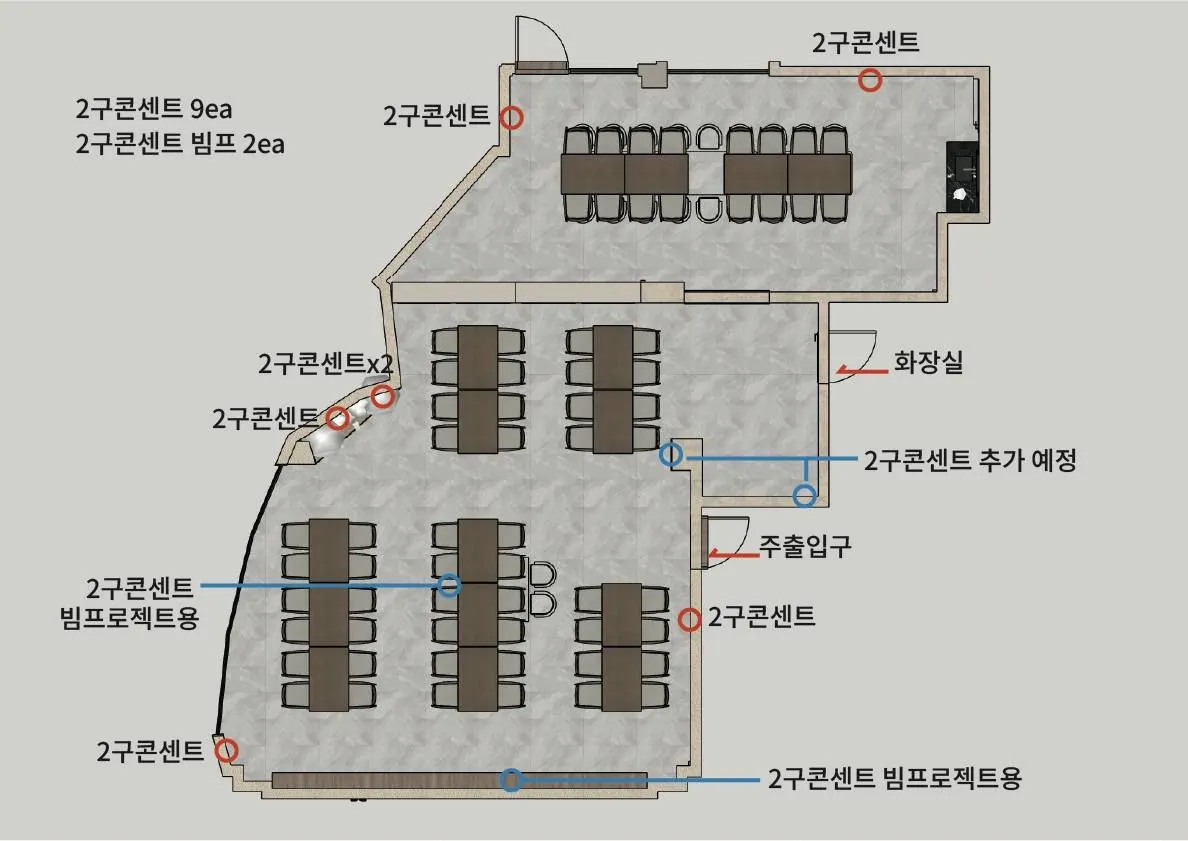 Please dispose of recyclable waste at the back of the space through proper waste separation. For coffee, be sure to separate the plastic cup and cup holder, and dispose of the contents in the bathroom.