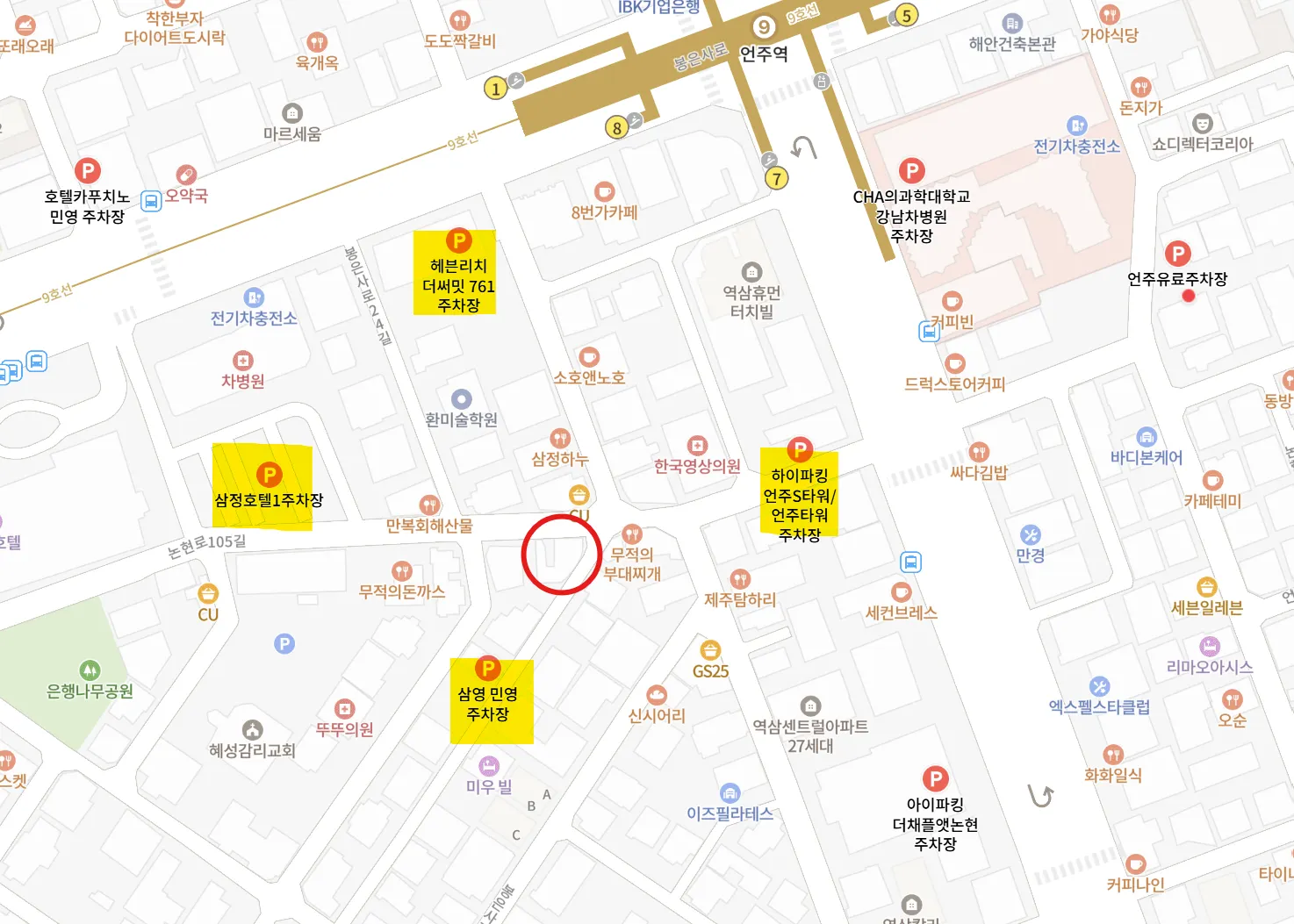 The red circle indicates the location of the space. Please refer to the nearby parking lot.